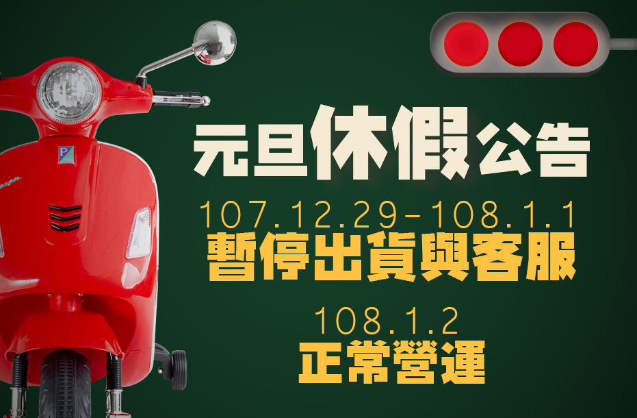 107/12/29-108/01/01 連休四天,暫停出貨與客服
