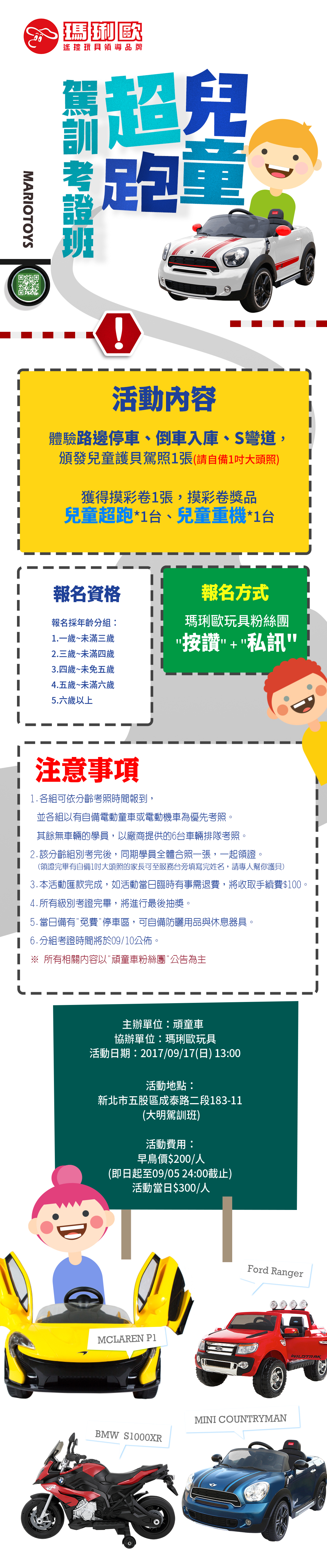 2017.09.17(日) 13:00第三屆 兒童超跑駕訓考證班