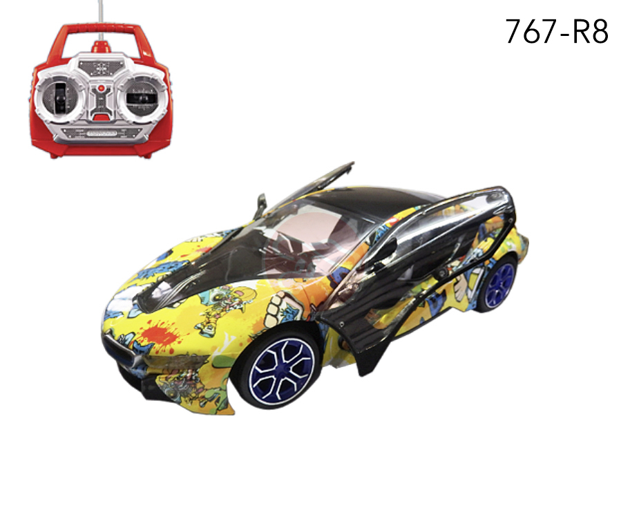 【型號767-R8】1:14一鍵遙控開門5通賽車/27M