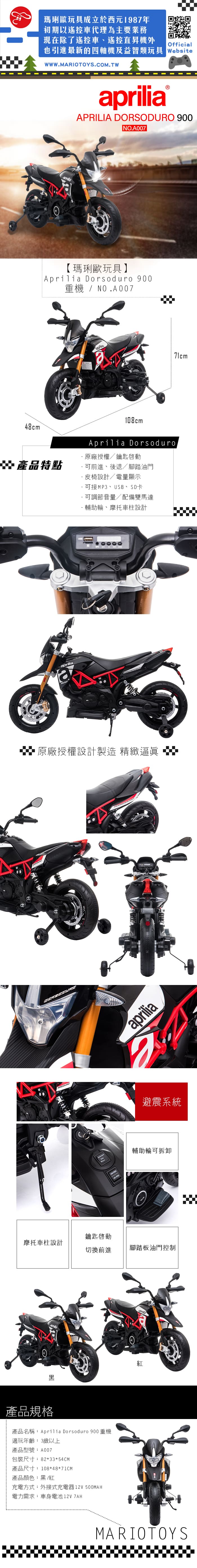 【型號A007】APRILIA DORSODURO 900摩托車/雙馬