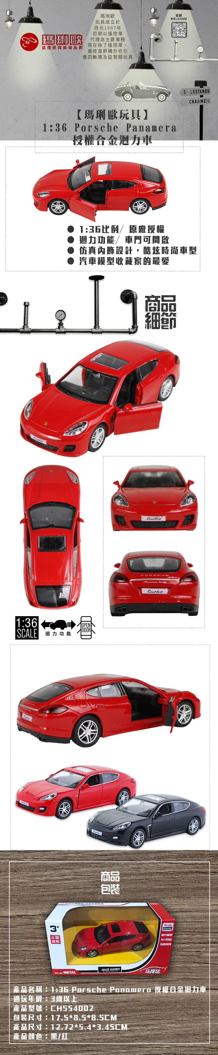 【型號CH554002】1:36 保時捷帕納梅拉授權合金迴力車