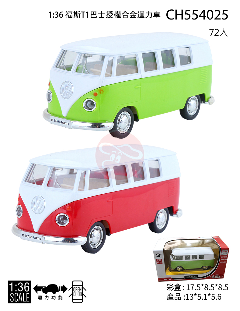 【型號CH554025】1:36 福斯T1巴士授權合金迴力車
