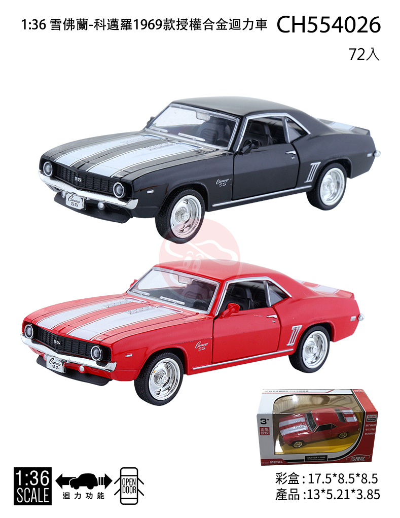 【型號CH554026】1:36 雪弗蘭-科邁羅1969款授權合金迴力車