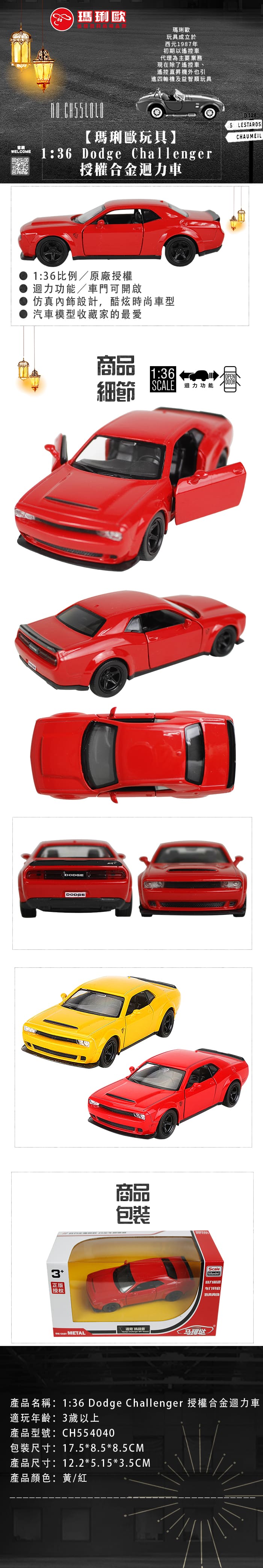 【型號CH554040】1:36 道奇 挑戰者授權合金迴力車
