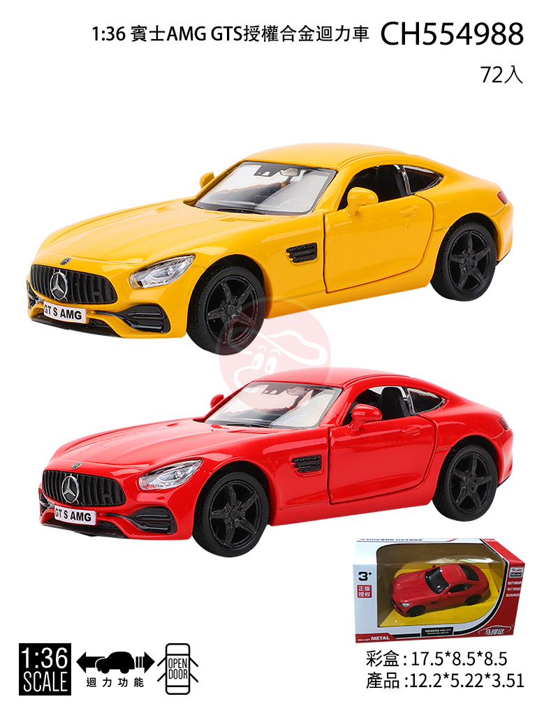 【型號CH554988】1:36 賓士AMG GTS授權合金迴力車