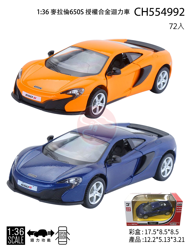 【型號CH554992】1:36 麥拉倫650S 授權合金迴力車