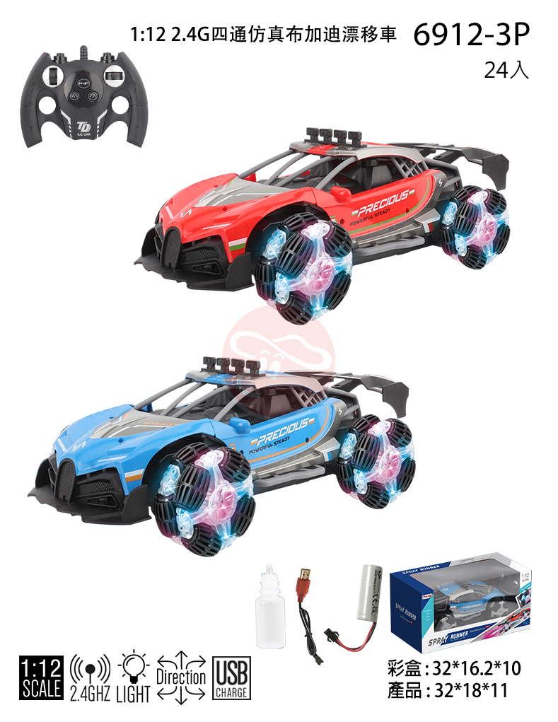 【型號6912-3P】1:12 2.4G四通仿真布加迪漂移車