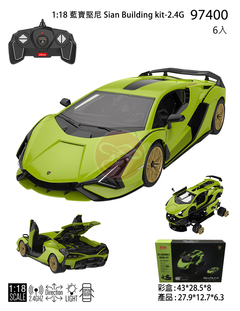 【型號97400】1:18 藍寶堅尼 Sian Building kit-2.4G
