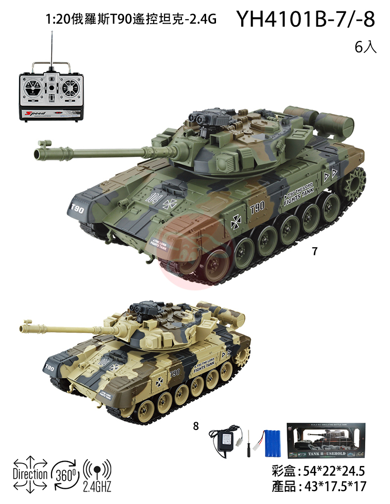 【型號YH4101B-7/-8】1:20俄羅斯T90遙控坦克-2.4G