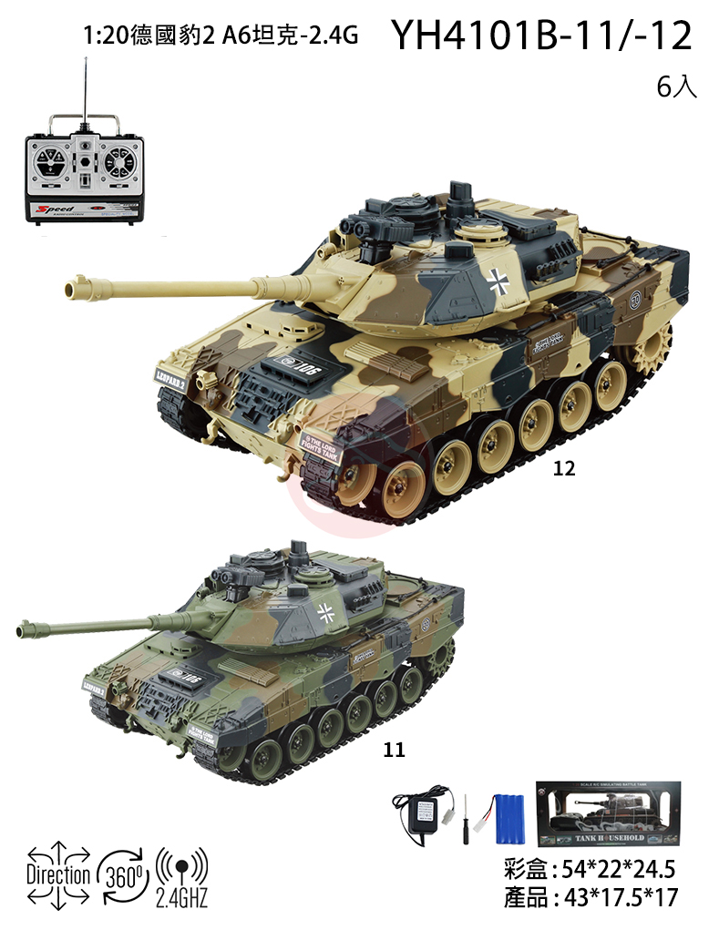 【型號YH4101B-11/-12】1:20德國豹2 A6坦克-2.4G