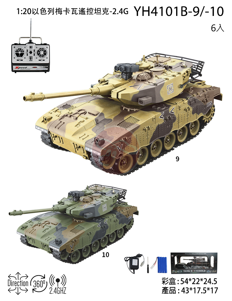 【型號YH4101B-9/-10】1:20以色列梅卡瓦遙控坦克-2.4G