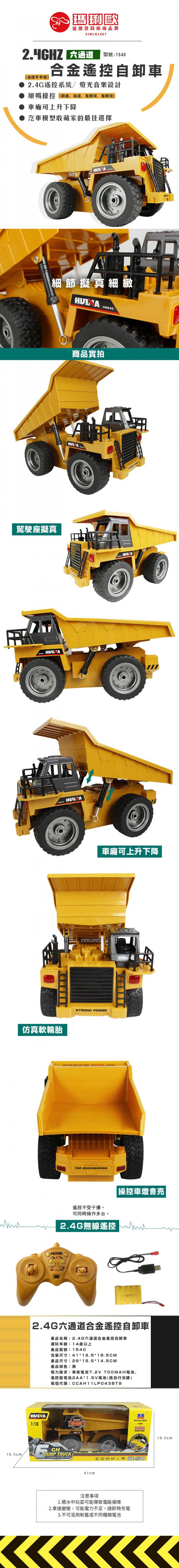 【型號1540】2.4G六通道合金遙控自卸車