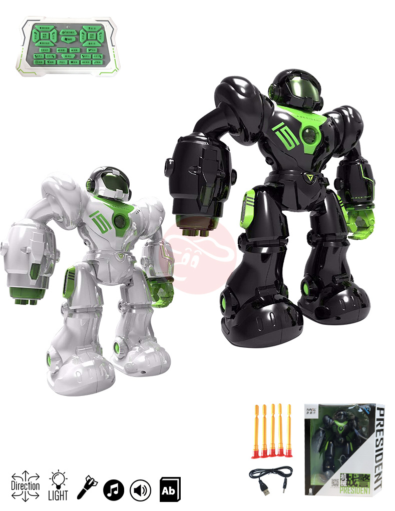 ● 多種模式:滑行、步行、演示、編程 ● 3段舞蹈、10首故事、19首歌曲 ● 可發射飛彈(勿朝向人射擊)/升降手臂/LED燈光 ● 紅外線設計/單一頻率 ● 適玩於親友聚會/增進互動樂趣