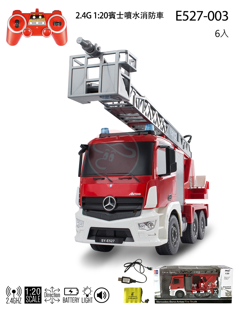 【型號E527-003】2.4G遙控1:20賓士遙控噴水消防車