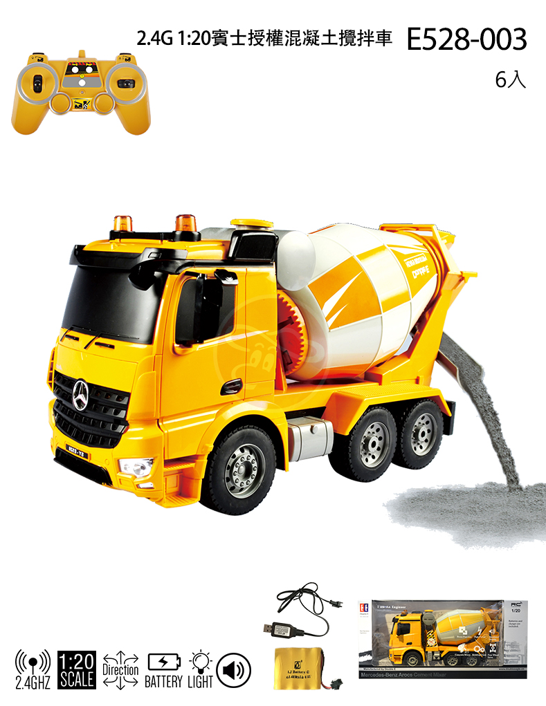 【型號E528-003】 2.4G遙控1:20賓士授權混凝土攪拌車
