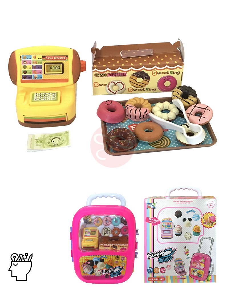● 行李箱拉桿可伸縮/輪子可滑動 ● 收銀機可轉動金額/抽屜可開,放置錢幣 ● 體驗角色扮演,學習語言表達 ● 透過實際操作,培養算術能力 ● 日常生活模擬,享受購物樂趣