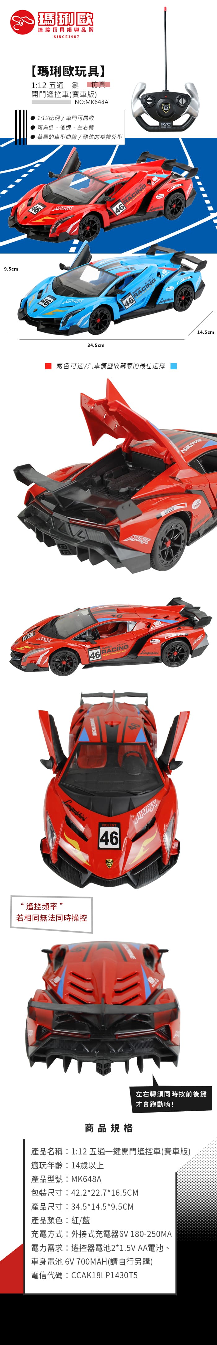 【型號MK648A】1:12五通一鍵開門仿真遙控車