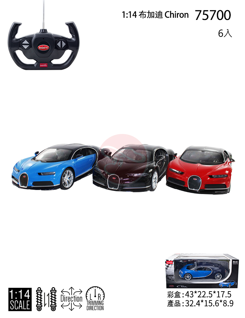 【型號75700】1:14 Bugatti Chiron 遙控車