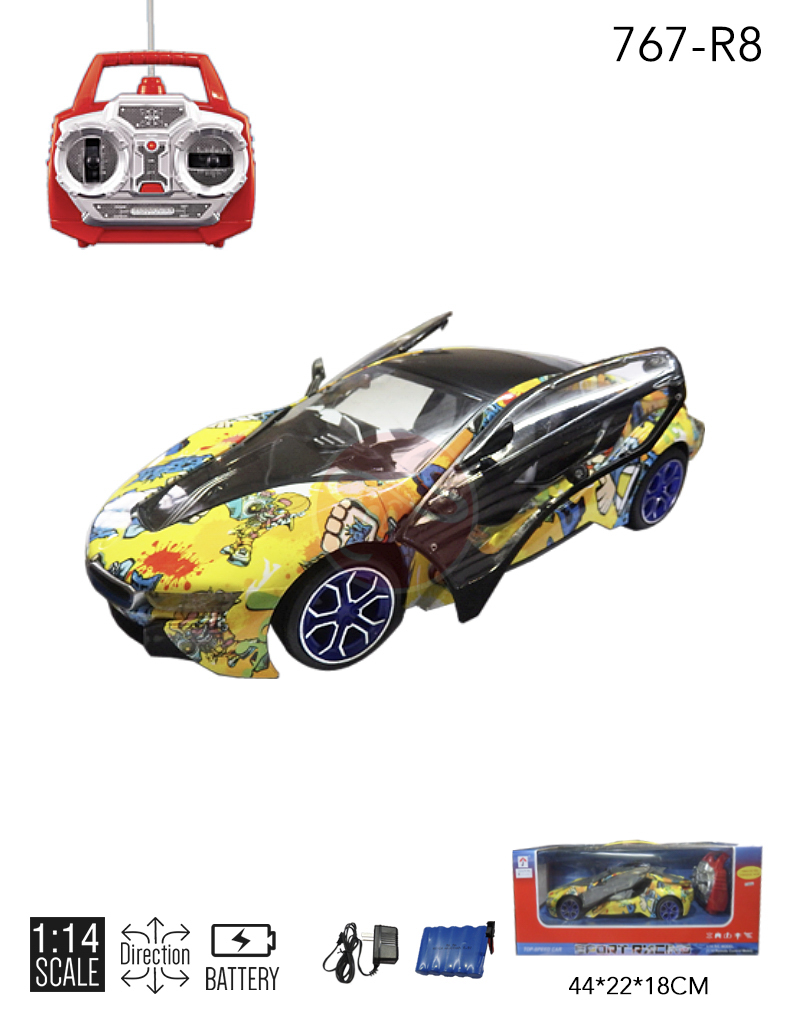 【型號767-R8】1:14一鍵遙控開門5通賽車/27M