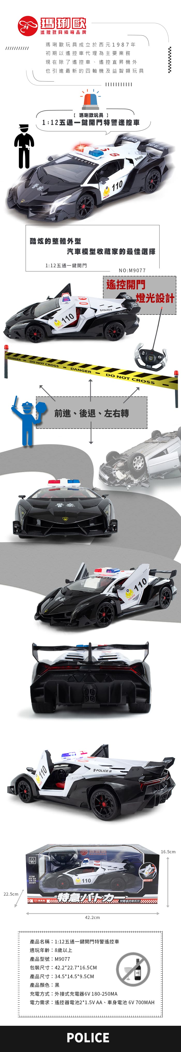 【型號M9077】1:12五通一鍵開門特警遙控車
