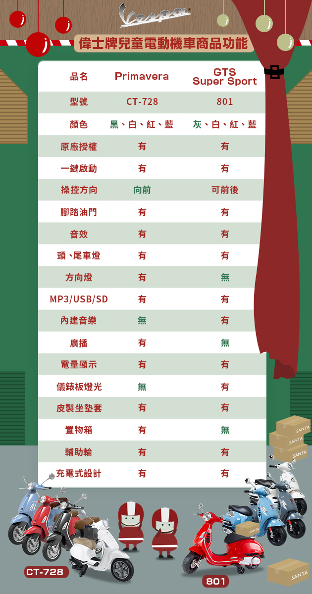 【型號CT-728】獨家代理-Vespa Primavera 偉士牌兒童電動機車
