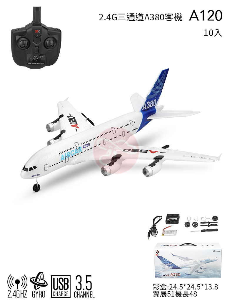 【型號A120】2.4G三通道A380客機