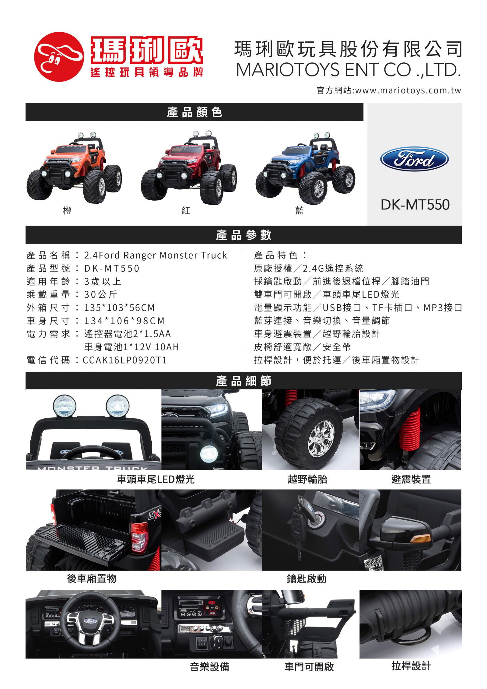【型號DK-MT550】2.4G Licensed Ford Ranger Monster Truck