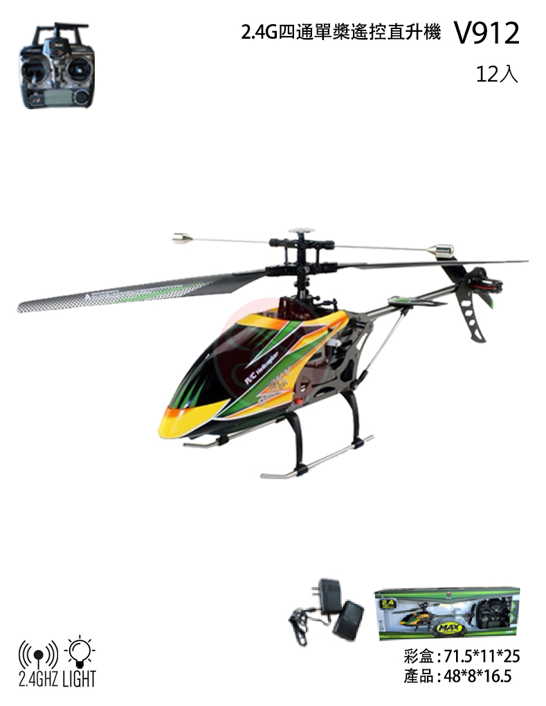 【型號V912】2.4G四通單槳遙控直升機