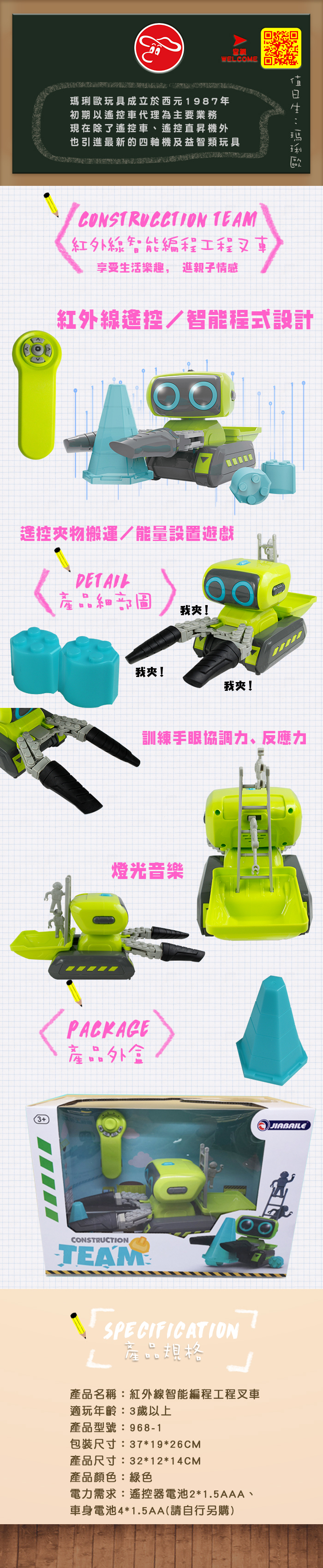 【型號968】紅外線智能編程工程叉車
