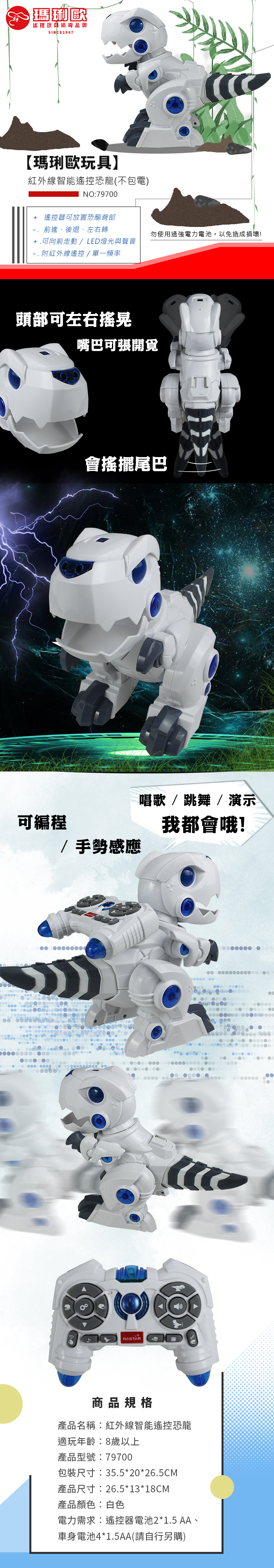 【型號79700】紅外線智能遙控恐龍(不包電)