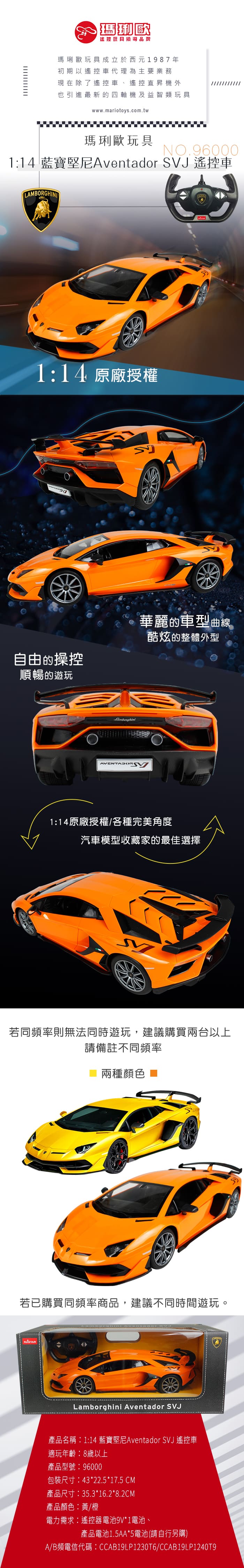 【型號96000】R/C 1:14 Aventador SVJ-2.4G (A/B 頻)